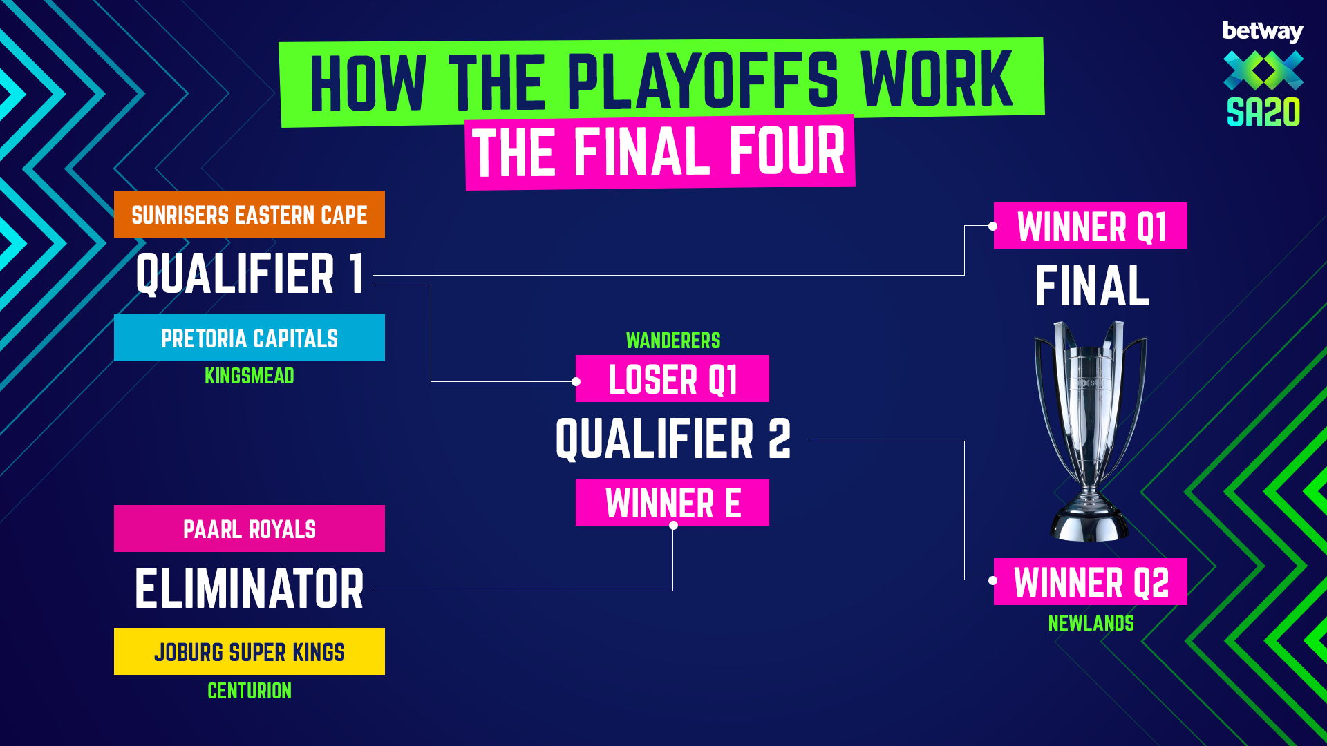 The winner will progress directly through to the coveted Betway SA20 Season 4 Final on Sunday, January 25 at Newlands (16:30 SAST start)